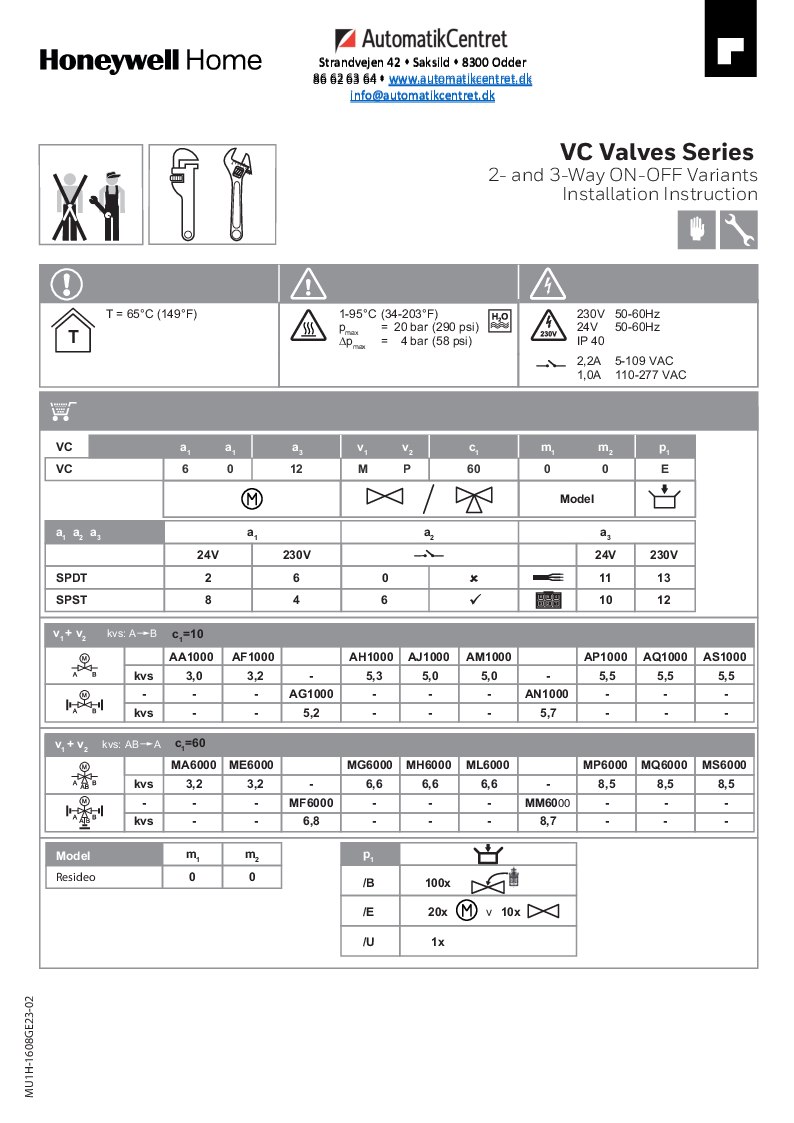 Zone/motorventilen leveres samlet Motor og ventil kan også købes hver for sig