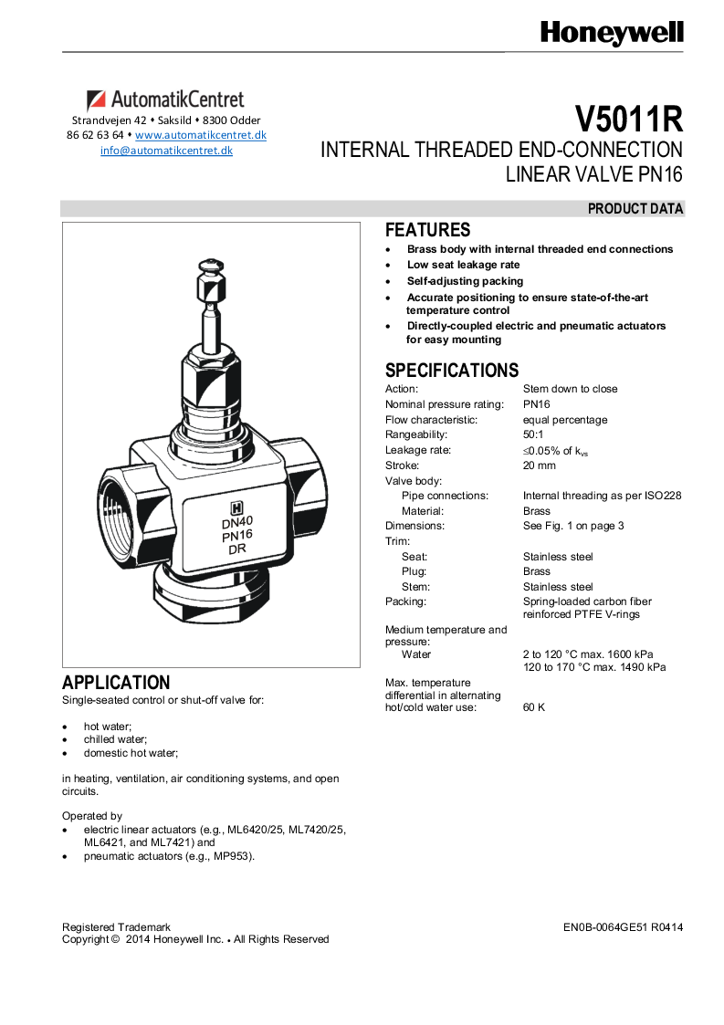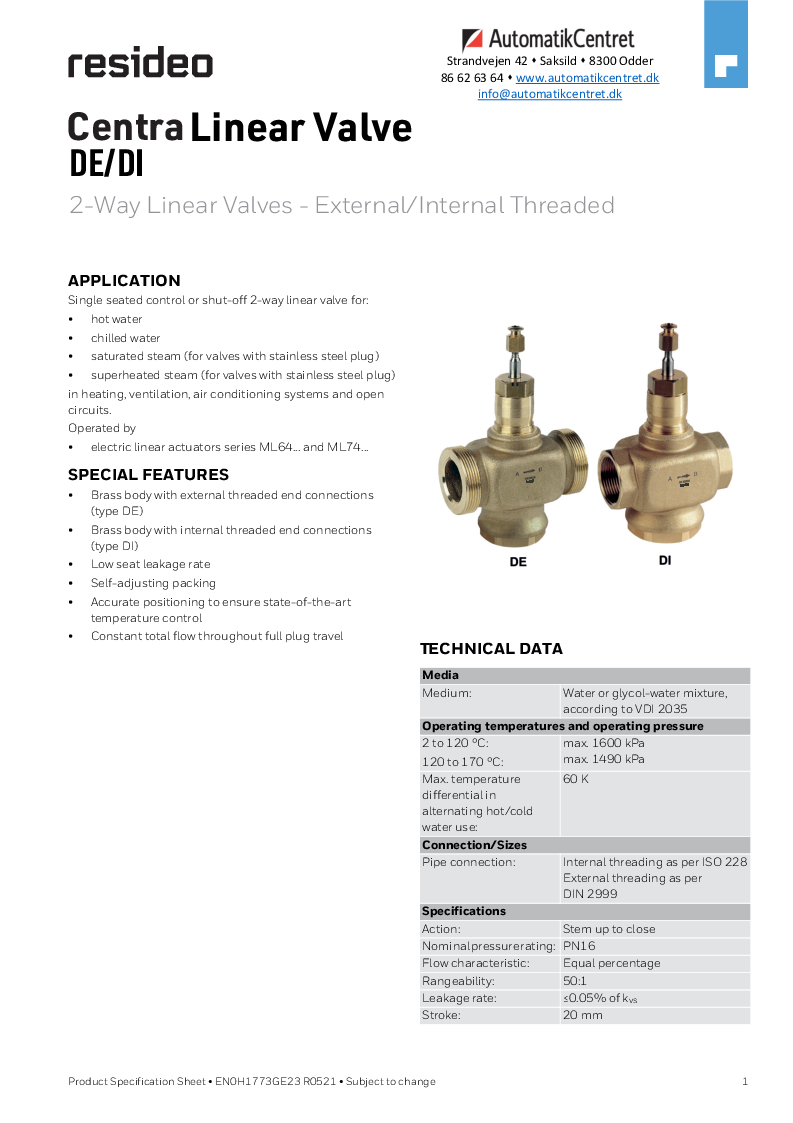 2-vejs muffeventil DN50mm kvs=40 fra Resideo | DI50B40