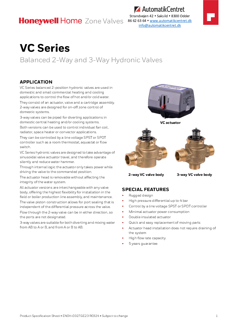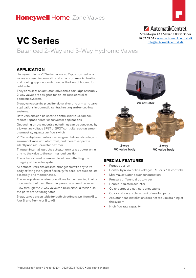 Honeywell Home 3-vejs ventil fra Resideo til VC ventilserien af zone-/motorventiler.