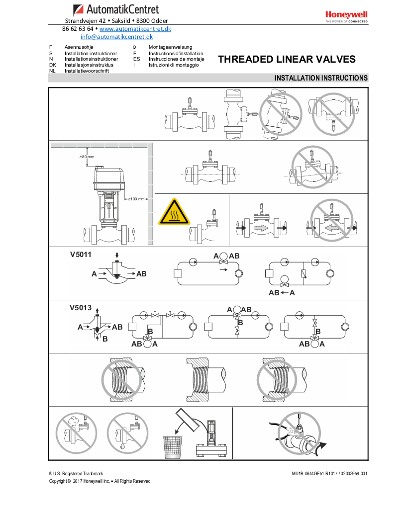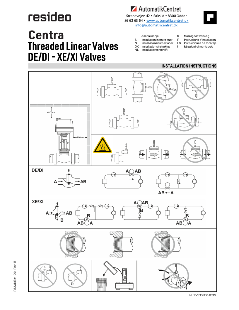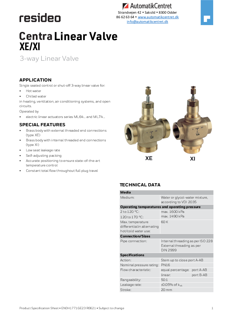 Centra 3-vejs ventil fra Resideo til opvarmning, ventilation og aircondition, åbne kredsløb; varmt/koldt vand kvalitet VDI2035