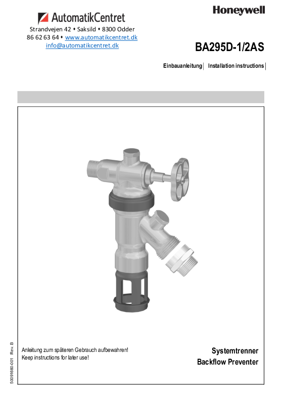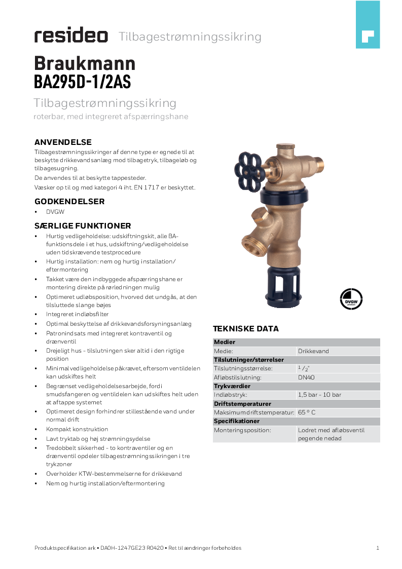 Tilbagestrømningssikring med lukkeventil, messing | BA295D-12AS