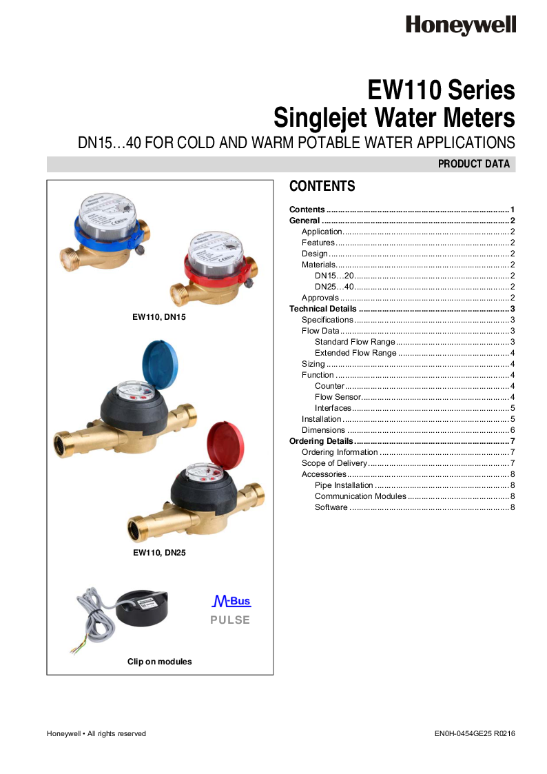 EW1100 Resideo vandmålere er velegnede til koldt vand op til 30C eller 50C.