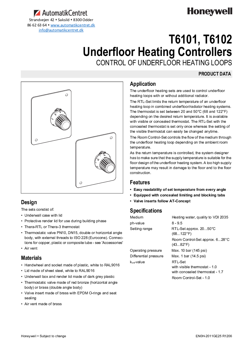 Honeywell Home RTL-sæt fra Resideo med synlig termostat begrænser returtemperaturen på en gulv varmesløjfe i kombinerede gulv-/radiatorvarmesystemer. Termostaten kan indstilles til mellem 20 og 50°C afhængigt af den ønskede returtemperatur 6-28°C.