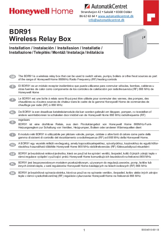 Honeywell Home Evohome Relæboks fra Resideo Evohome Fortrådet relæboks med trådløst signal, til start/stop af kedel efter behov.