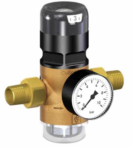 MEDIE...............................: Vand TEMPERATUR..................: 40°C MATERIALE, HUS.............: Blyfri rødgods CuSn4Zn2PS MATERIALE, INDV. DELE.: PPSU, rustfrit stål, 1.4404, EPDM INDBYGGET SNAVSSI......: 0,16 mm (kan udskiftes) INDGANGSTRYK..............: 16 bar AFGANGSTRYK...............: 1,5-7 bar (fabriksindstillet til 3 bar) TILSLUTNING...................: Unioner med udv. gevind medfølger