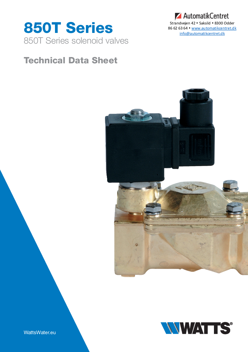 Dette er en magnetventil fra Watts med specielle egenskaber, der gør det muligt for den at dække en særlig bred vifte af applikationer. Især er de beregnet til brug som lukkekomponenter i kredsløb til varme-, konditionerings-, køle- og behandlingssystemer til håndtering af vand, luft og inerte væsker.