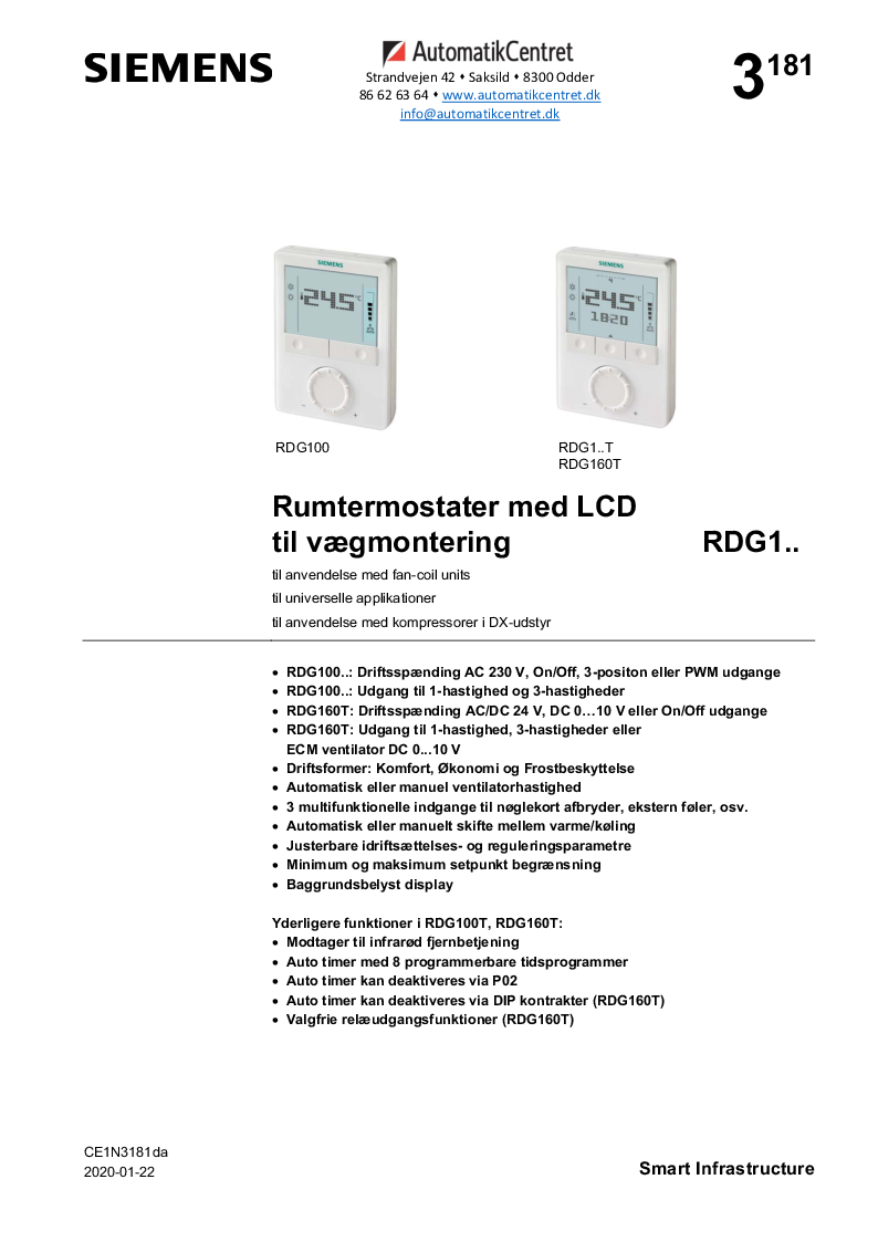 Siemens Vægmonterede rumtermostater med LCD display, mulighed for infrarød fjernbetjening