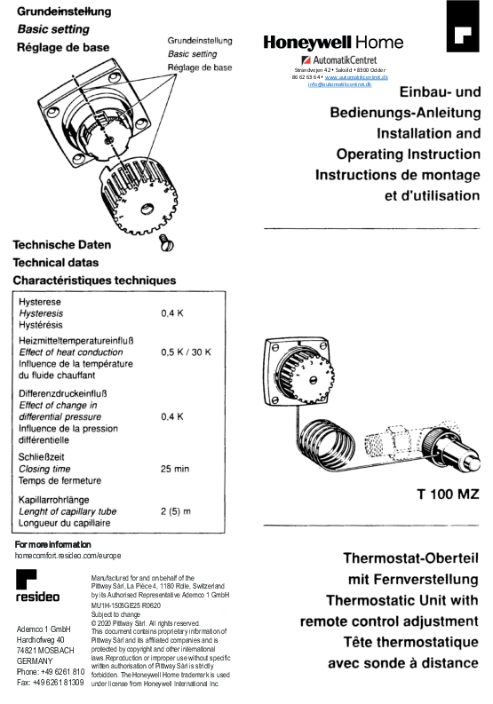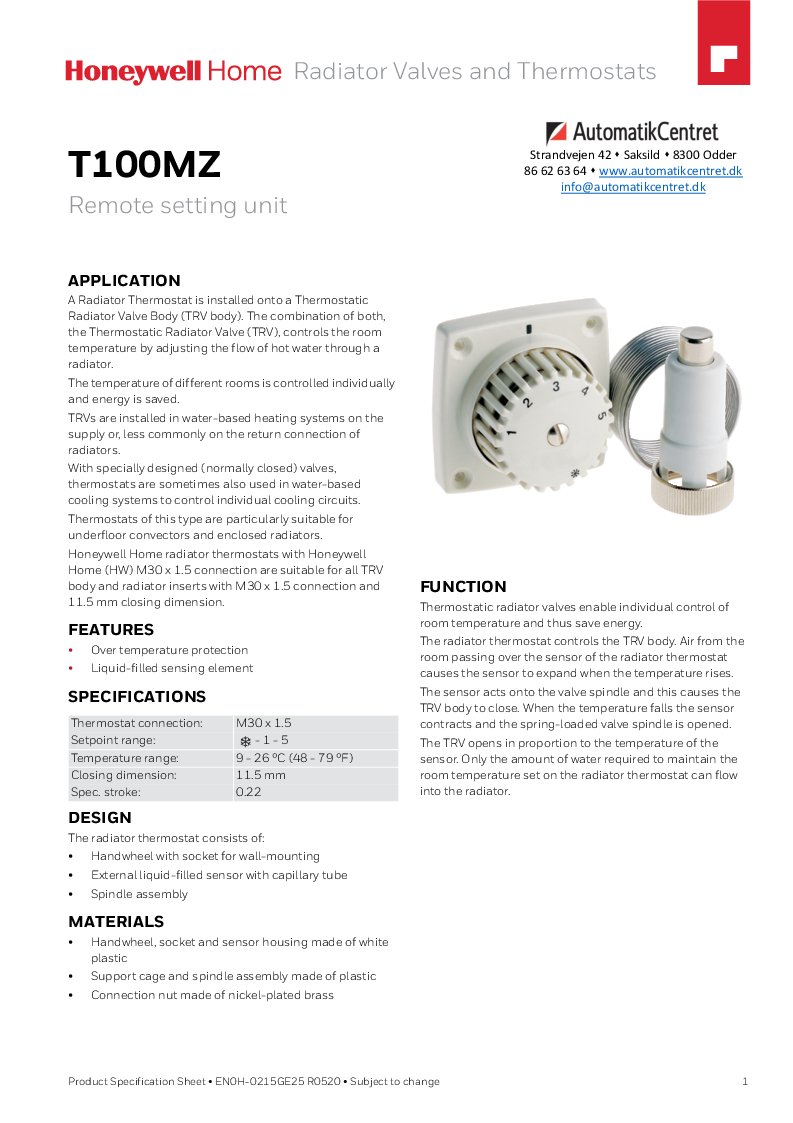 Honeywell home termostat med ventiloverdel fra Resideo er velegent til brug, hvor det ikke er muligt at måle eller indstille temperaturen ved radiatorventilen.