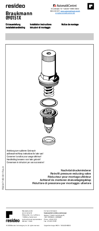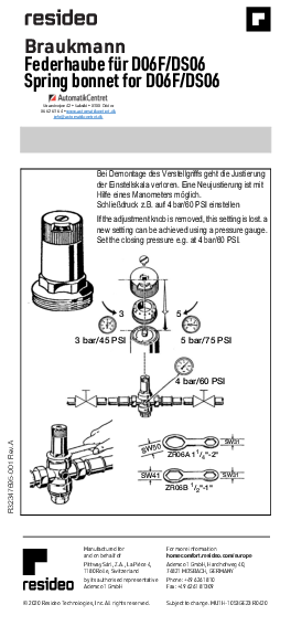 Braukmann produkt fra Resideo Udskiftnings top med skala, leveres uden fjeder til D06F og Blyfri D06F-LF Braukmann trykreduktionsventiler fra Resideo.