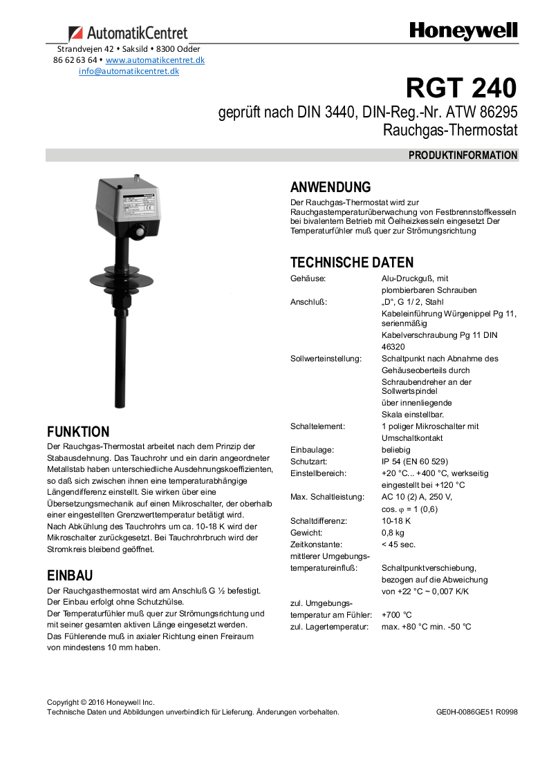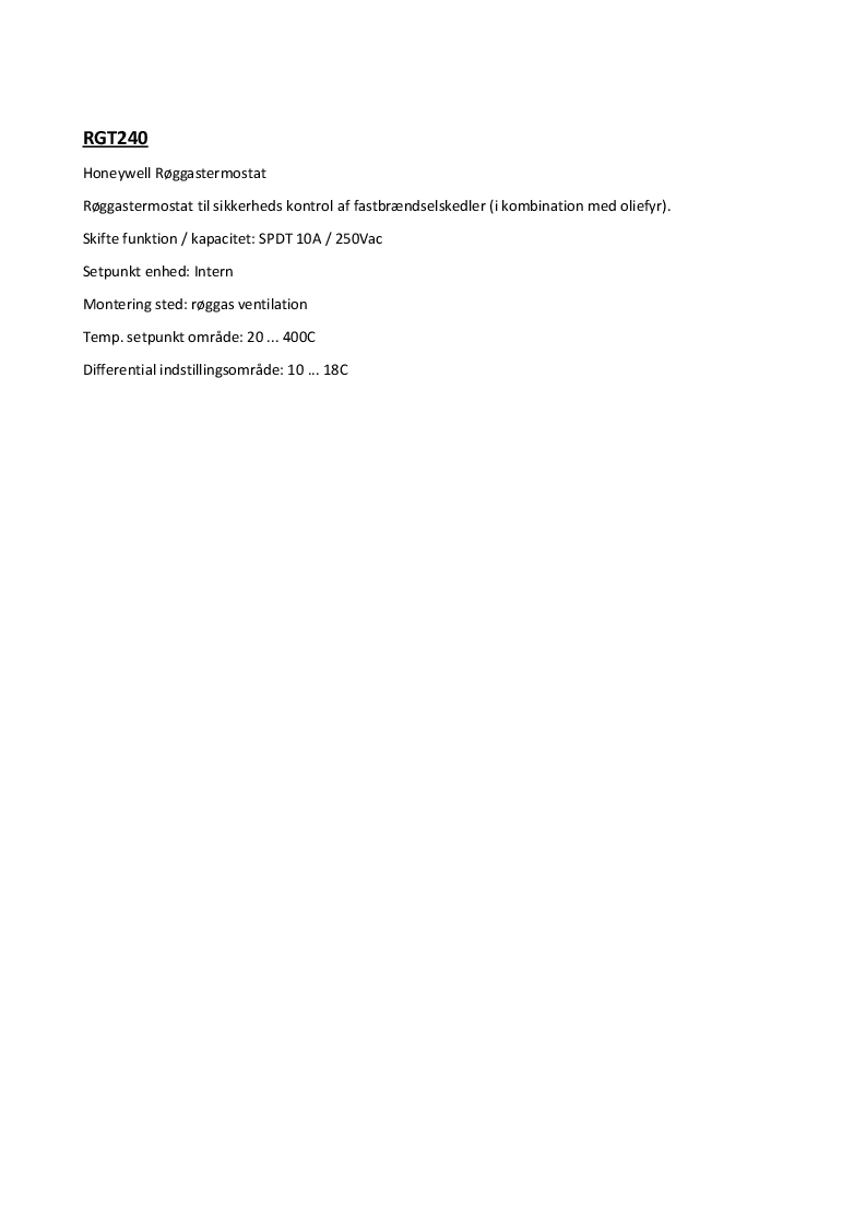 Honeywell røggastermostat til sikkerhedskontrol af fastbrændselskedler (i kombination med oliefyr).