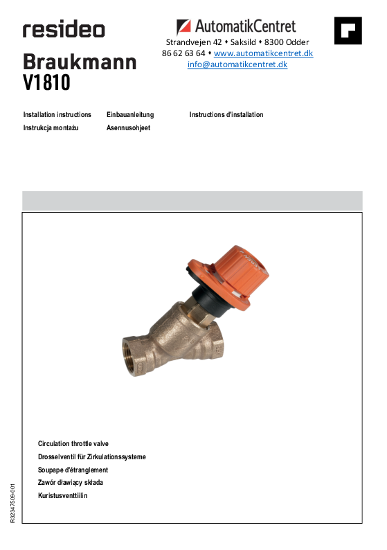 Strengreg.- og afspær.ventil til cirk.vand DN20 | V1810Y0020