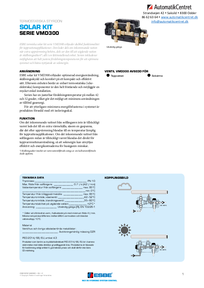 Esbe Solar kit inkl. skoldningssikring DN20 | VMD322