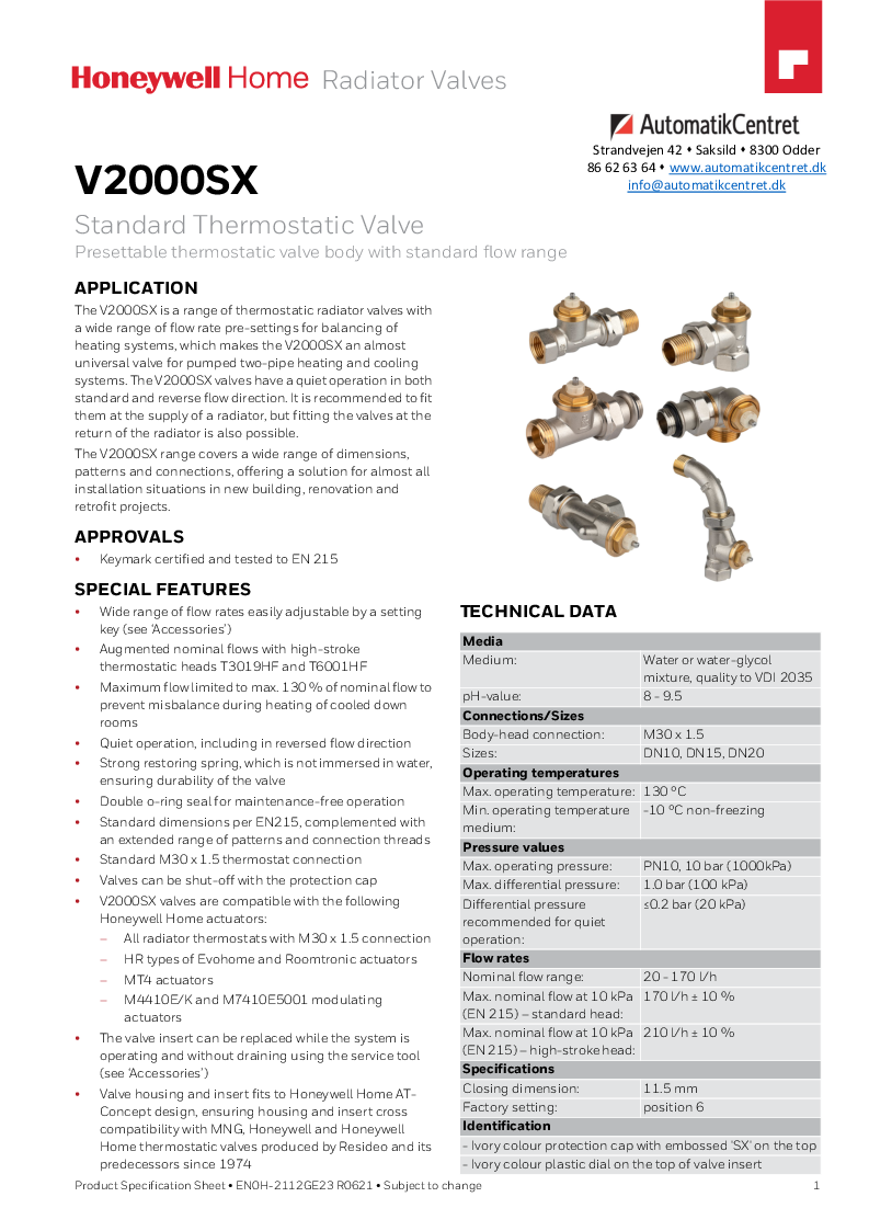 Indstillingsnøgle f. mng +HH radiatorventiler | VA8201PI04